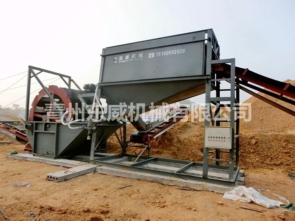 篩沙洗沙一體機(jī)采用更緊湊的結(jié)構(gòu),把整套設(shè)備集成于一個(gè)框架內(nèi),由料倉、上料輸送機(jī)、滾筒篩、廢料輸送機(jī)、輪式洗沙機(jī)、成品料輸送機(jī)等等部分組成,可一次性完成砂石料洗選作業(yè)。設(shè)備總功率約42kw,用水量60-80m3/小時(shí),每小時(shí)工作量60-80m3,適用于機(jī)制砂、河沙、石粉的篩分洗選作業(yè)。