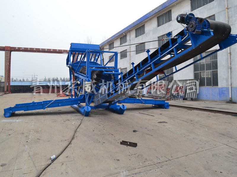 設備由料倉、滾筒篩、固定溜槽、鼓動溜槽、尾料輸送機、水泵組等系統(tǒng)組成,通過電機或柴油機驅(qū)動滾筒篩及其他水泵系統(tǒng),供水量可根據(jù)原料情況通過閥門調(diào)節(jié)水量大小。