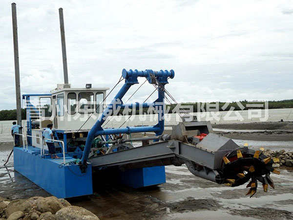 絞吸式挖沙船是目前在河道開采、清淤中運(yùn)用較廣泛的一種船舶,它是利用吸泥管前端圍繞吸泥管裝設(shè)旋轉(zhuǎn)絞刀裝置,將河底泥沙進(jìn)行切割和攪動(dòng),再經(jīng)吸泥管將絞起的泥沙物料,借助強(qiáng)大的泵力,輸送到泥沙物料堆積場,它的挖泥、運(yùn)泥、卸泥等工作過程,可以一次連續(xù)完成,它是一種效率高、成本較低的清淤工具,是良好的水下挖掘機(jī)械。