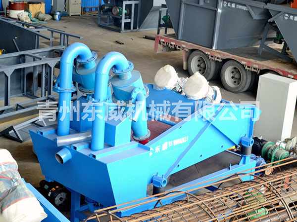 目前現(xiàn)有的洗沙生產(chǎn)線上,絕大部分采用濕法生產(chǎn)工藝,不論采用何種形式的洗砂機(jī),其大的缺點(diǎn)就是細(xì)沙流失嚴(yán)重,嚴(yán)重影響沙子的級(jí)配,造成級(jí)配不合理,細(xì)度模數(shù)偏粗,大大降低了機(jī)制砂的產(chǎn)品質(zhì)量。過多的細(xì)沙排放,還會(huì)造成環(huán)境污染。為解決上述問題,青州東威機(jī)械技術(shù)部門潛心研發(fā)了細(xì)沙回收機(jī)(細(xì)砂回收機(jī)),該細(xì)沙回收系統(tǒng)吸收國(guó)外先進(jìn)技術(shù),結(jié)合本土砂粉實(shí)際情況而設(shè)計(jì)的細(xì)沙回收設(shè)備。細(xì)沙回收機(jī)廣泛應(yīng)用于洗沙場(chǎng)、砂石骨料加工系統(tǒng)、玻璃原材料加工系統(tǒng)、人工制沙生產(chǎn)線、選煤廠粗煤泥的回收以及環(huán)保工程(泥漿凈化)等,可有效解決細(xì)沙回收問題。