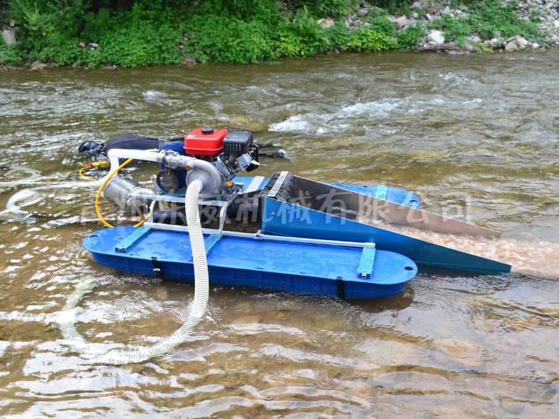 該設(shè)備抽沙系統(tǒng)采用新型結(jié)構(gòu),原料抽取過程中物料不流經(jīng)泵組,不用考慮泵和葉輪的磨損;沙金重選裝置為我公司專門研發(fā)的橡膠選金墊,沙金提取效率高,可對毛細(xì)金、片狀金進(jìn)行回收;適用于中小型礦場、河道、小溪淘金、探礦作業(yè);